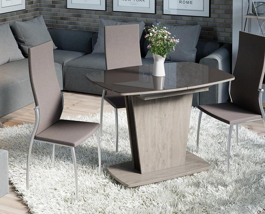Цвет Стола—Дуб миланский/Стекло бежевое глянец